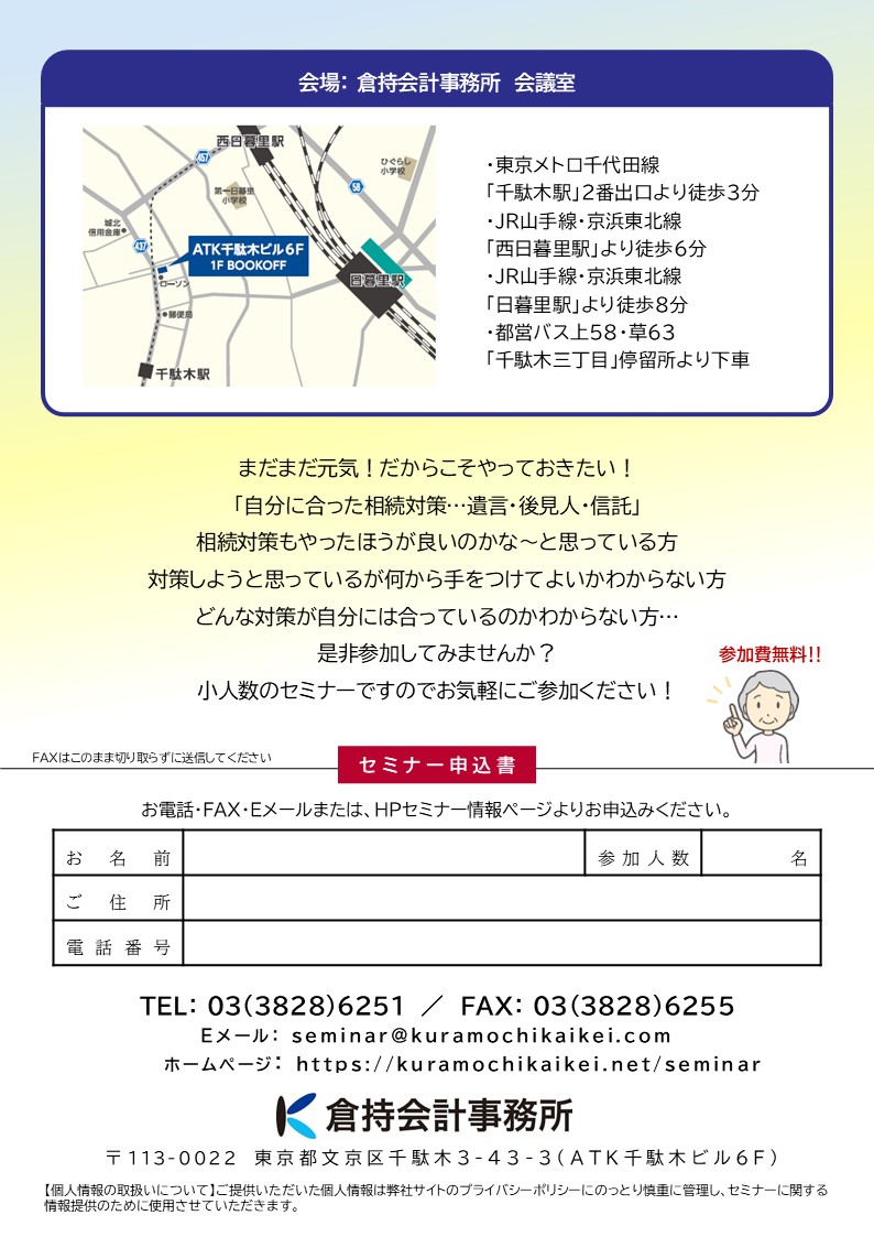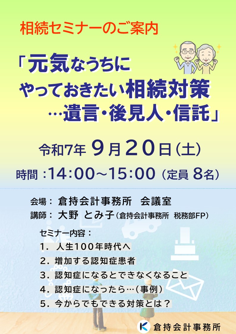 相続セミナー2025「元気なうちにやっておきたい相続対策~」 - 2024/09/09